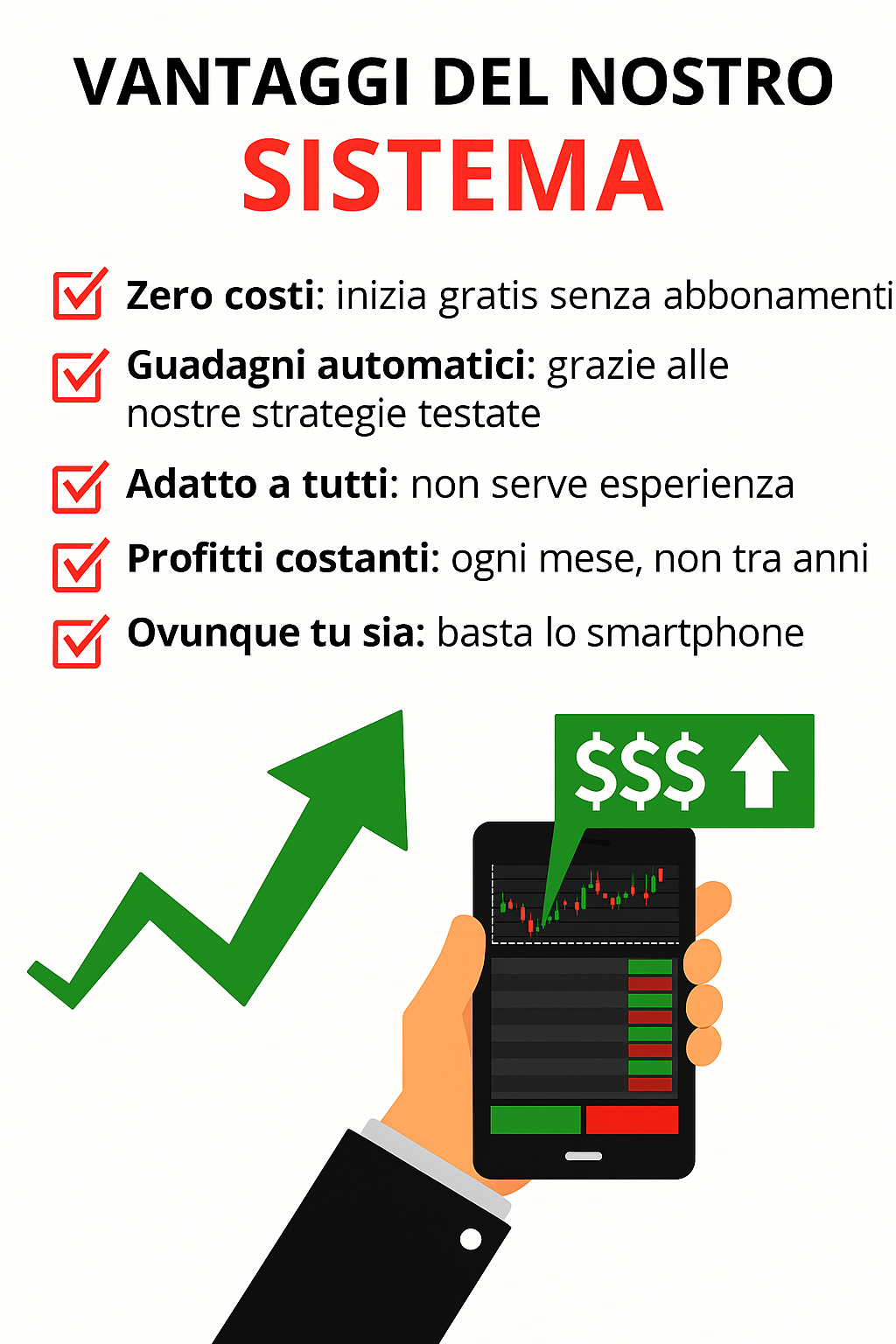 Puoi iniziare con un deposito minimo di 500€, ma per ottenere risultati più consistenti fin da subito, consigliamo di partire con almeno 1.000–1.500€. 💰