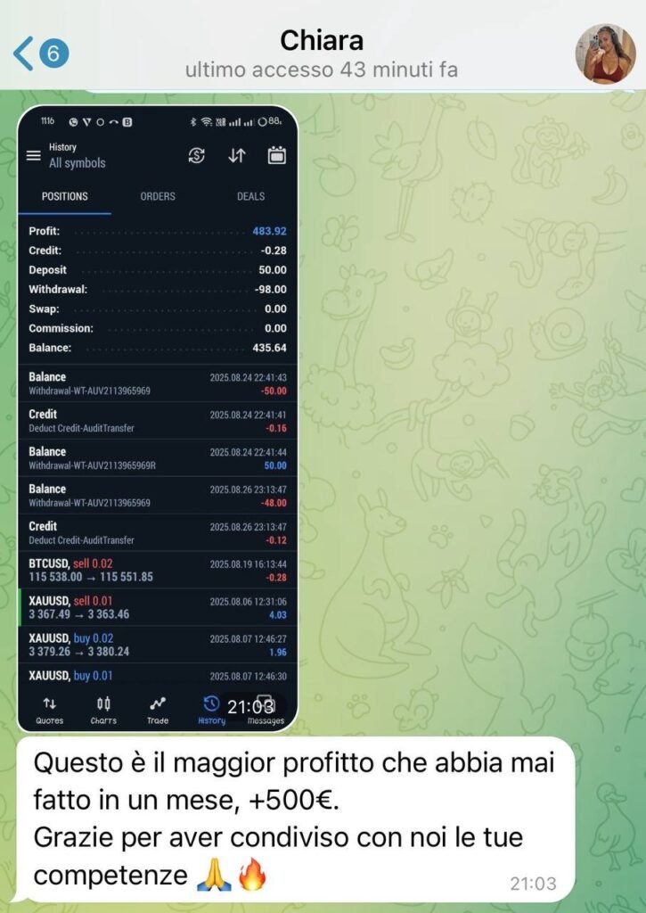 Crediamo che chiunque meriti la possibilità di generare risultati reali nel trading, anche senza esperienza o grandi capitali di partenza.